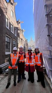 Het doel: dit historische straatje, gelegen tussen de Beurs van Berlage en Warmoesstraat, weer aantrekkelijk maken, zodat ook de Amsterdammer er weer wil komen én wonen. ‘Beneden blijven er winkels en cafés. De bovenverdiepingen stonden voorheen leeg, maar wij maken daar veertien woningen.’ Dat is belangrijk, stelt ze, ‘want met bewoners heb je bij nacht en ontij ogen in de buurt.’